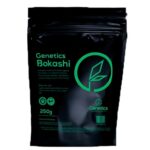 O Genetics Bokashi (tecnologia japonesa) é um fertilizante natural formado pela fermentação aeróbica de matéria orgânica misturada com turfa, substrato, farinha de osso, carvão, farelo de arroz e kefir. O processo fermentativo se inicia com a adição de microrganismos eficazes (bacillus e leveduras) e dura por volta de três meses. No processo a temperatura e umidade são controlados a fim de manter as condições ideais para o máximo enriquecimento do produto final com moléculas orgânicas e nutrientes. Tais moléculas são prontamente assimiladas pelas plantas o que resulta em um crescimento e desenvolvimento extraordinários. O Bokashi ainda atua na saúde e estrutura do solo, proporcionando o equilíbrio biológico, químico e físico que o seu cultivo precisa. Este adubo é de liberação lenta, o que significa que os nutrientes são liberados gradativamente. Por isto uma embalagem de 250g ou 1kg pode durar bastante tempo, conforme a recomendação de uso